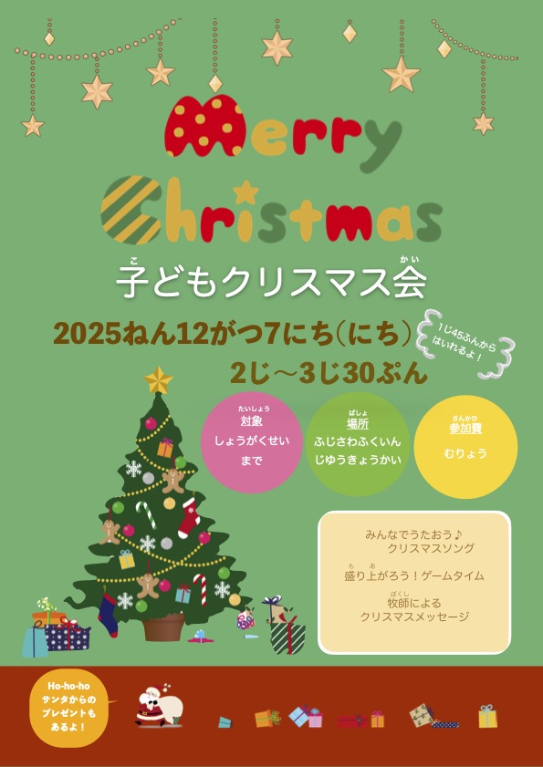 幼児から小学生を対象に,今年もクリスマス会を開きます😊